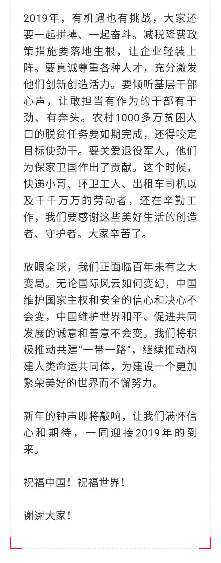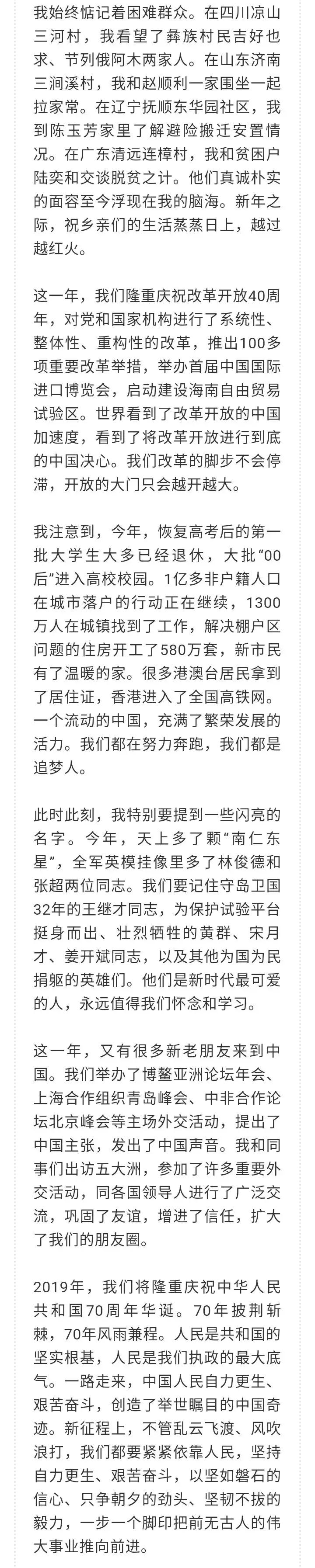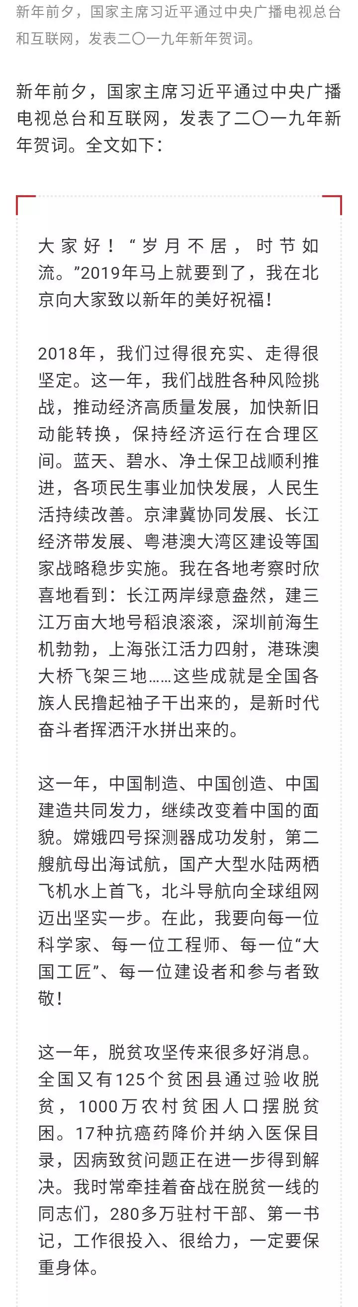 習近平發表二〇一九年(nián)新年(nián)賀詞:我們都(dōu)在努力奔跑,我們都(dōu)是追夢人(rén)