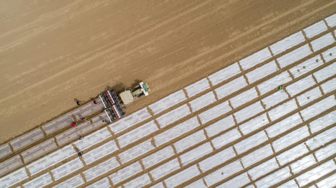 ▲ An autonomous crop-sowing vehicle plants cotton seeds on Friday in a high-yield demonstration field in Kuqa county in the Xinjiang Uygur autonomous region.