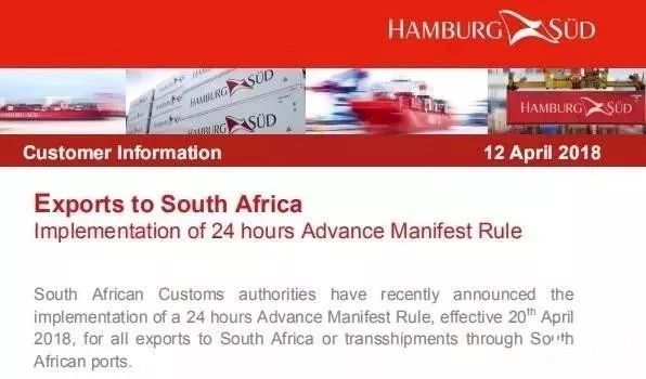 值得(de)外貿貨代朋友們注意的是,去(qù)年(nián)4月20日(rì)開始南(nán)非海關已經全面實施“2014年(nián)海關管制法",全面執行AMS申報!