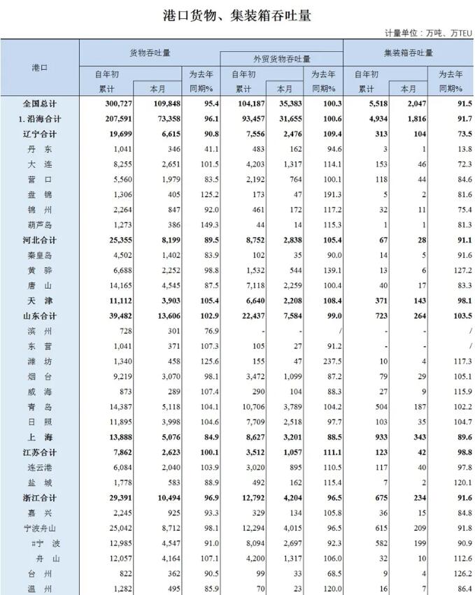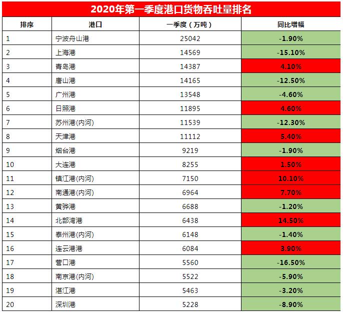全國(guó)各大(dà)港口貨物、集裝箱吞吐量排名出爐(2020年(nián)第一季度)