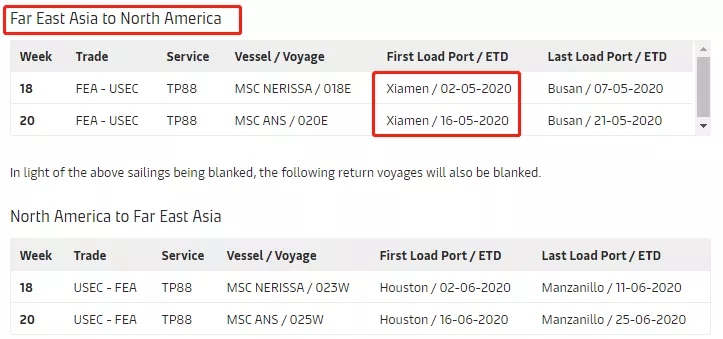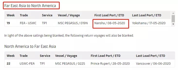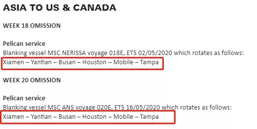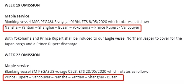 MSC停航調整計(jì)劃