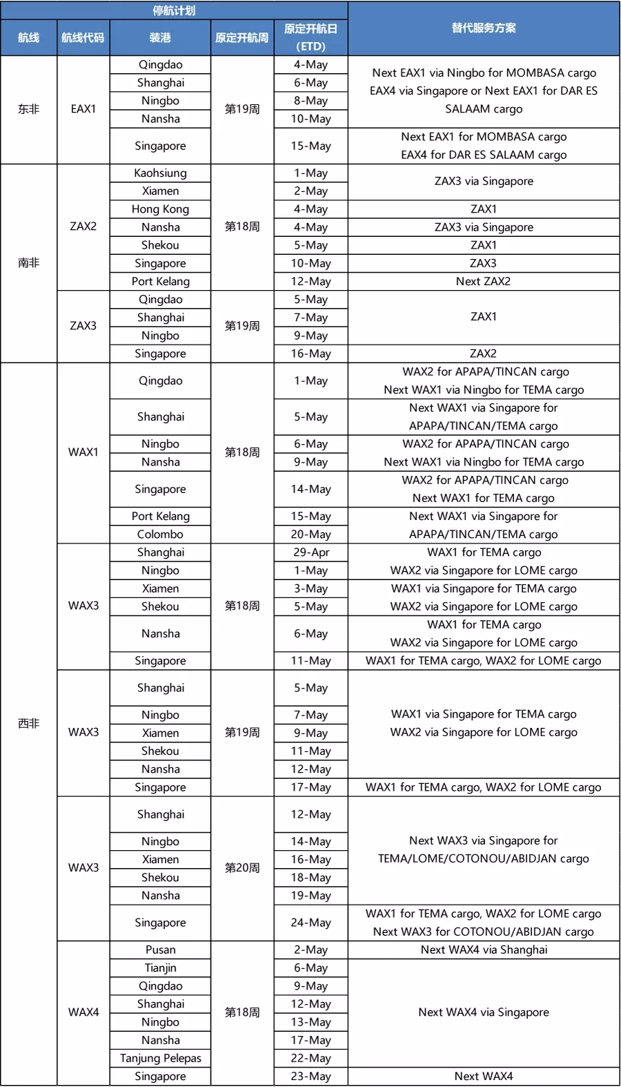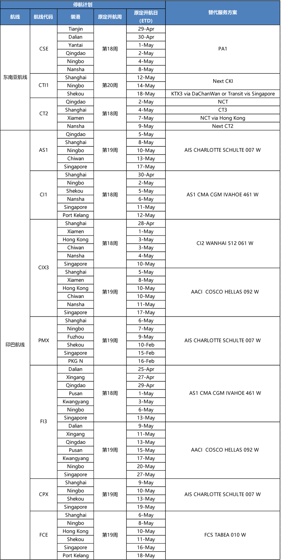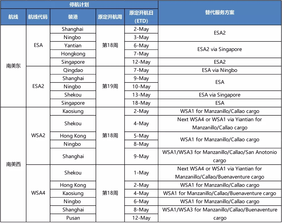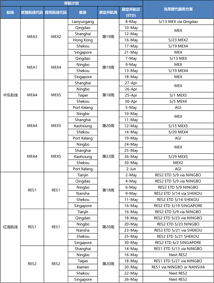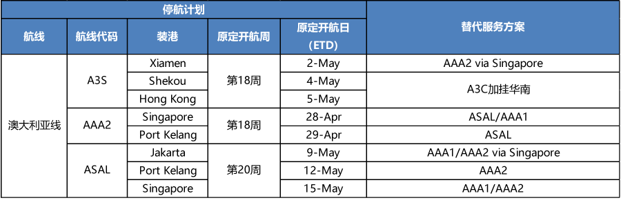 APL4-5月停航調整計(jì)劃