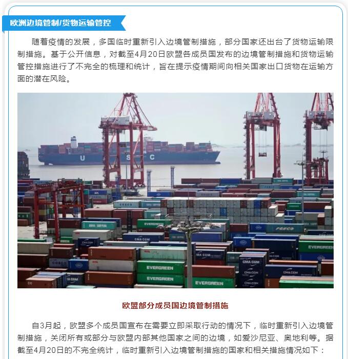歐盟部分(fēn)成員(yuán)國(guó)貨物運輸管控措施
