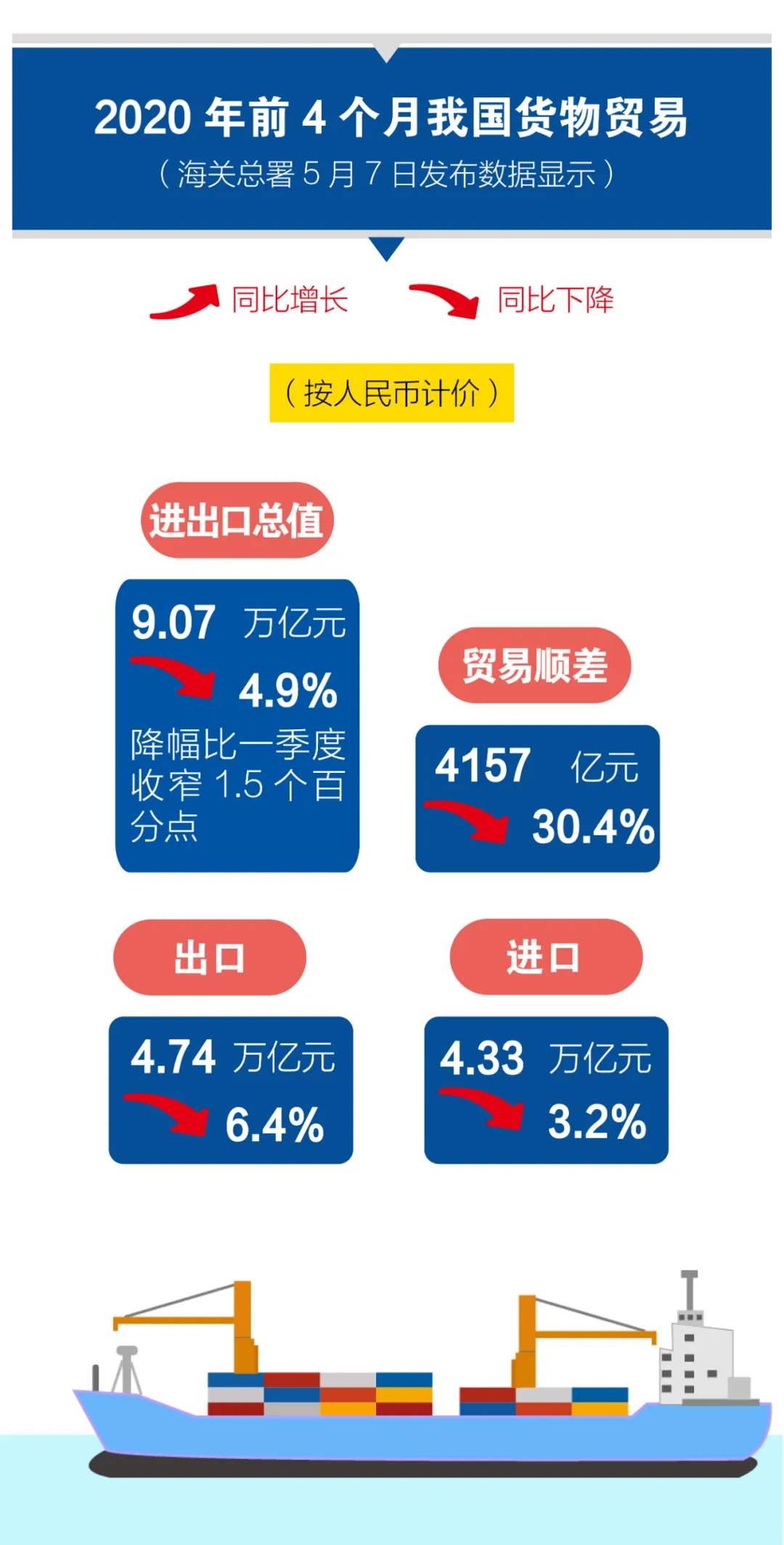 前4個月我國(guó)外貿進出口情況;其中對美出口下降15.9%