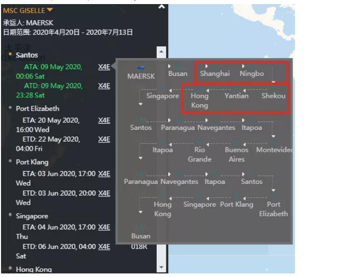 ▲該輪船(chuán)期,曾挂靠上海、甯波、蛇口、鹽田港