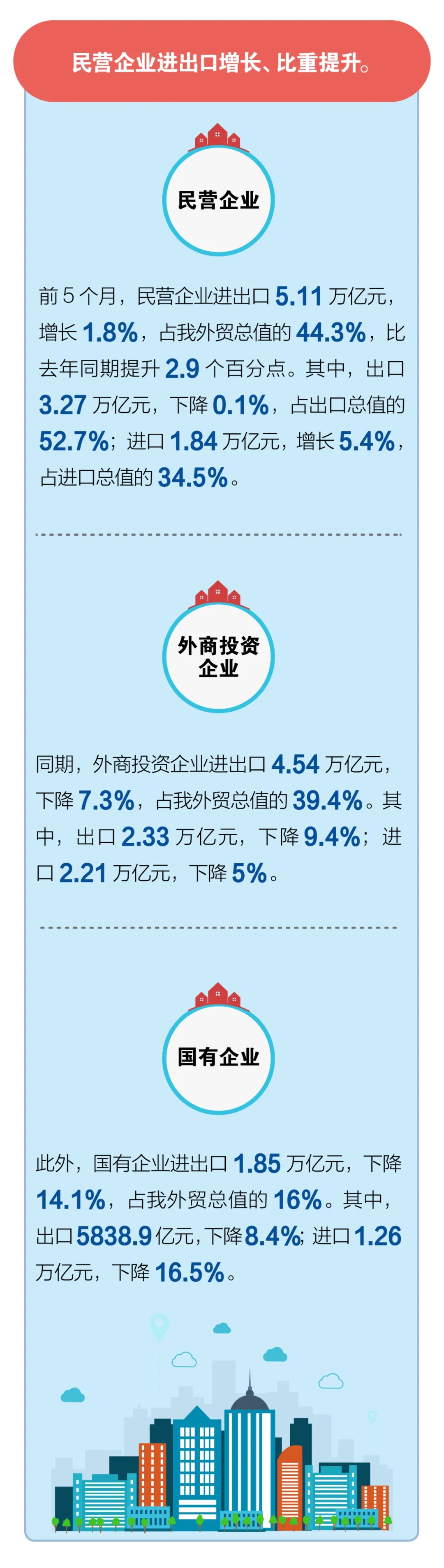 前5個月我國(guó)外貿進出口情況;5月份出口增長1.4%