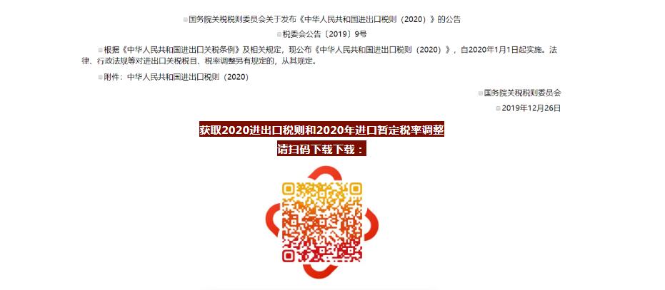 《中華人(rén)民(mín)共和國(guó)進出口稅則(2020)》,自(zì)2020年(nián)1月1日(rì)起實施。法律、行政法規等對進出口關稅稅目、稅率調整另有規定的,從(cóng)其規定。包括根據國(guó)家關稅政策以及有關國(guó)際協定确定的進出口關稅稅目、稅率及歸類規則,是海關計(jì)征關稅的依據。2020版《稅則》進出口稅目,與2019版《稅則》相(xiàng)同,未做調整;2020版《稅則》最惠國(guó)稅率、進口暫定稅率、協定稅率和特惠稅率,在2019版《稅則》基礎上,根據《國(guó)務院關稅稅則委員(yuán)會關于進口暫定稅率等調整方案的通知》(稅委會〔2019〕50号)進行了調整。除2020版《稅則》中已公布的稅目稅率外,法律、行政法規等對進出口關稅稅目、稅率調整另有規定的,仍依照(zhào)法律、行政法規等實行。