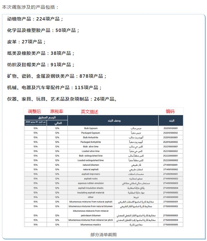 上月,沙特海關決定自(zì)2020年(nián)6月10日(rì)起提高部分(fēn)商品的進口關稅,提高進口關稅的商品清單涉及2600多個稅則号,涉及較多的産品有家電、汽車行業等機(jī)電産品,以及鋼材等。但(dàn)該通知發出後又被暫緩執行。根據最新消息,沙特關務署宣布自(zì)6月20日(rì)起上調部分(fēn)産品的進口關稅,受影(yǐng)響的産品由此前通知中的2600多項減少至1449項,關稅調整幅度在0.5%-15%之間。