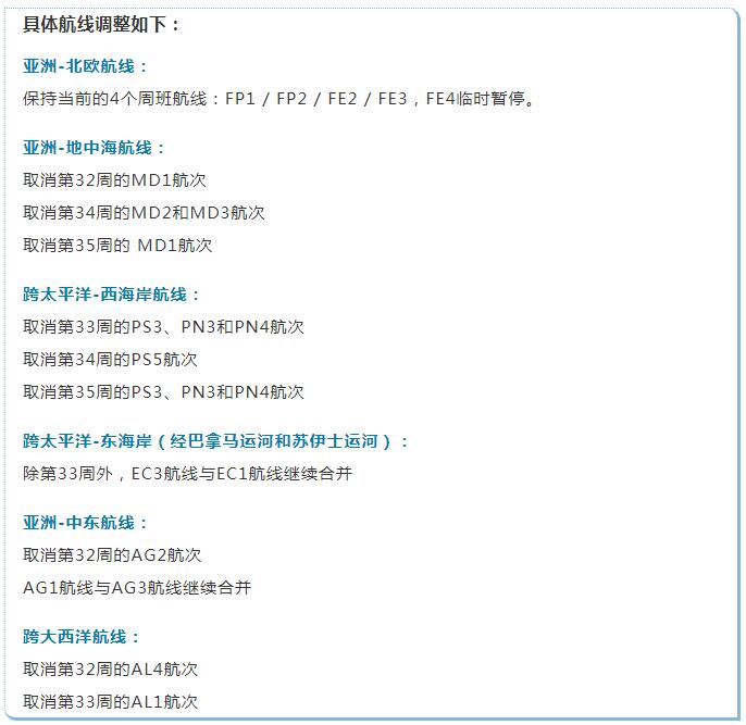 7月8日(rì),THE聯盟成員(yuán)ONE、赫伯羅特,均在官網發布了THE聯盟8月份補充停航計(jì)劃,以應對新冠肺炎疫情給全球航運市場帶來(lái)的影(yǐng)響。