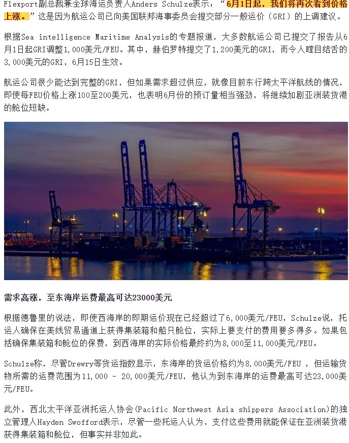 重磅!新一波漲價潮将來(lái)襲!美線海運最高或可(kě)達23000美元!