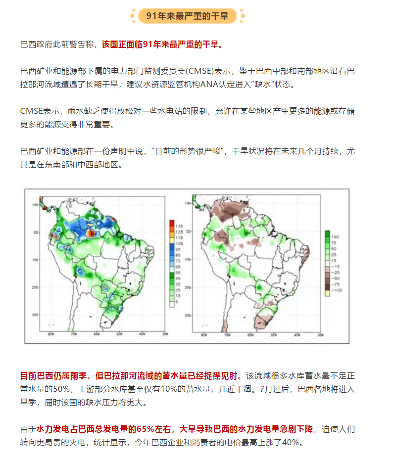 “百年(nián)一遇”旱災!巴西農産品大(dà)幅減産,或重返“饑餓地圖”……
