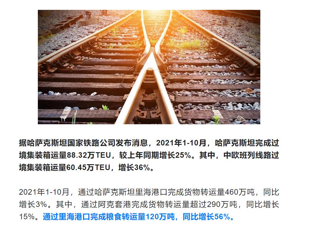 1-10月哈薩克斯坦過境集裝箱運量增長25%