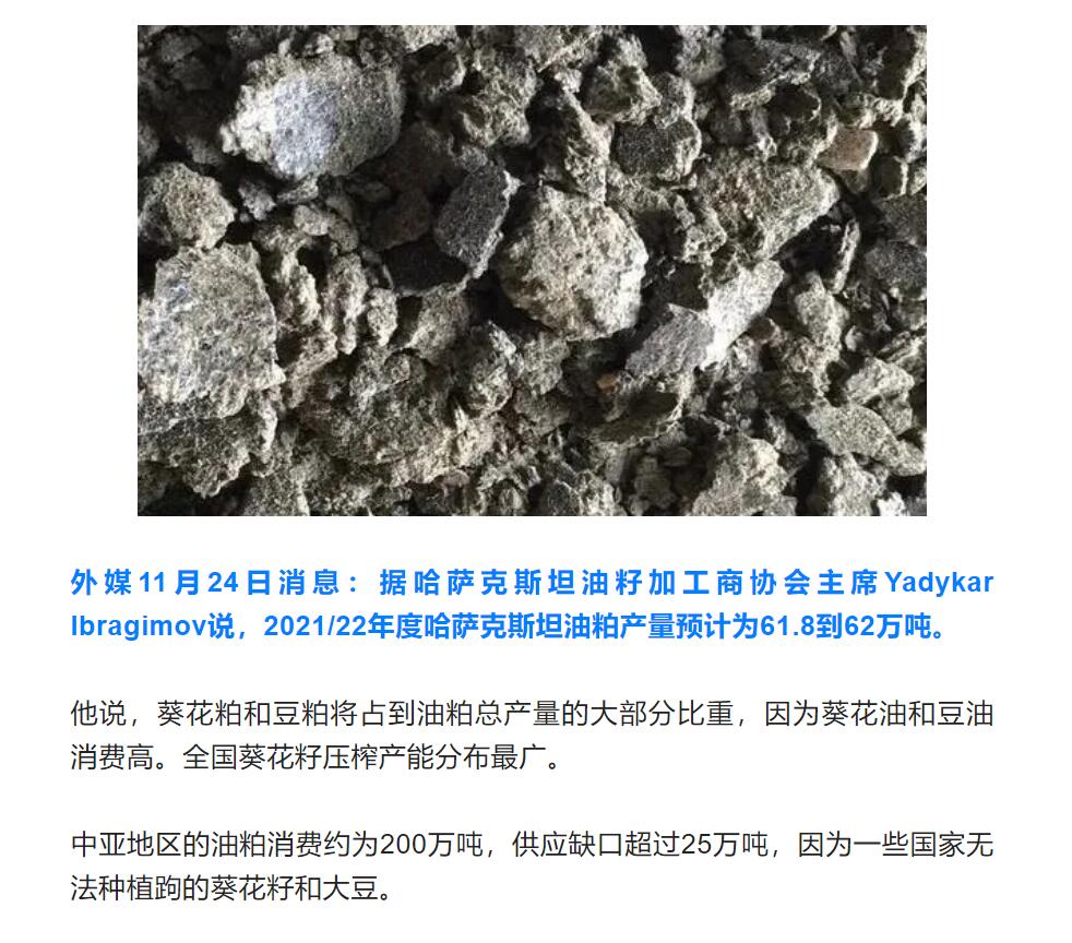 2021/22年(nián)度哈薩克斯坦油粕産量預計(jì)爲62萬噸