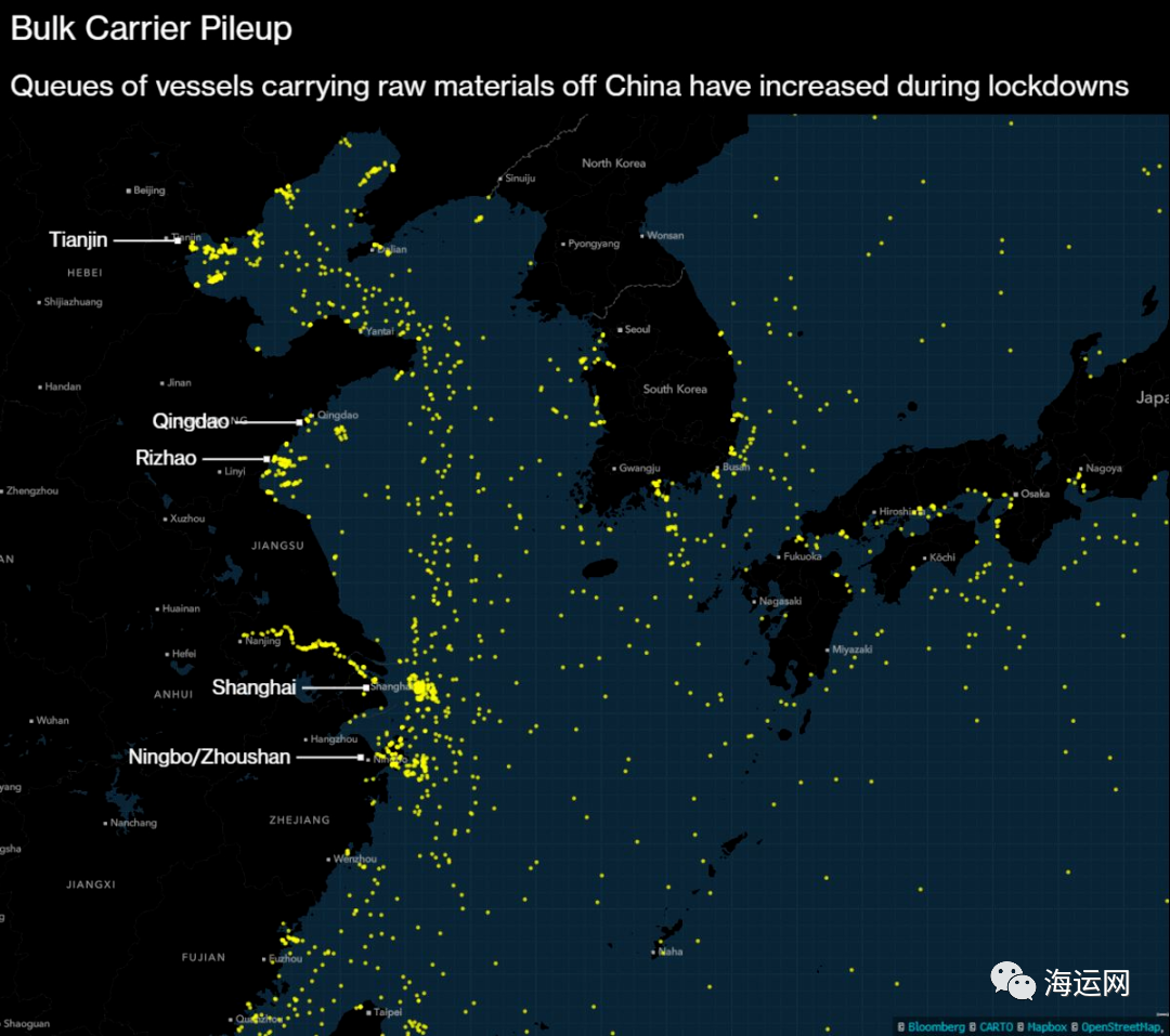 受疫情影(yǐng)響,由于卡車司機(jī)短(duǎn)缺和倉庫關閉等原因,擁有全球第一大(dà)集裝箱港口的上海受到影(yǐng)響,華東港口附近海域等待船(chuán)舶數量激增。目前至少有477艘載滿金屬、礦石和谷物等原料以及集裝箱的貨船(chuán)擁堵在華東港口等待進關。