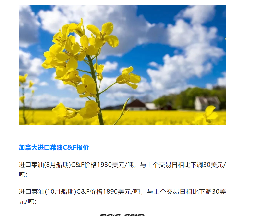 7月13日(rì)進口加拿大(dà)菜籽油報價