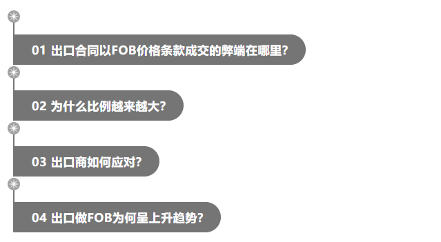 據統計(jì),中國(guó)出口中以FOB成交的占到70%,但(dàn)專家指出:FOB對出口商的風(fēng)險更大(dà),有可(kě)能造成貨、款兩空的結局。