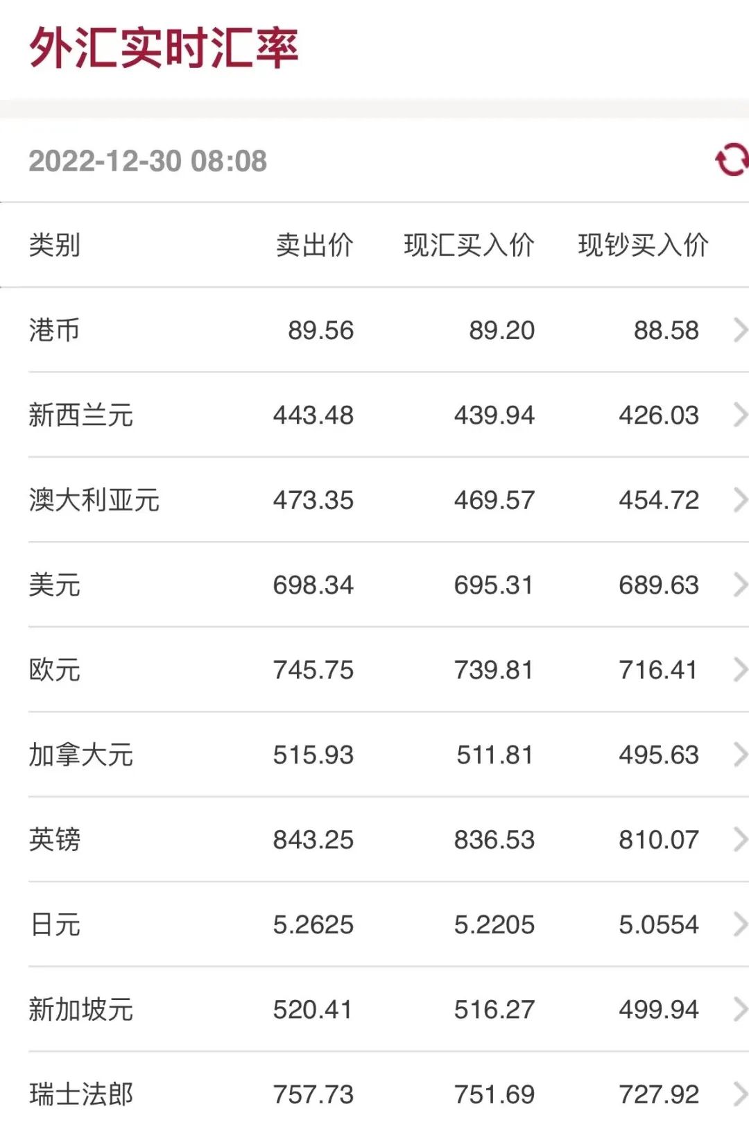 【今日(rì)彙率】2022年(nián)12月30日(rì)彙率