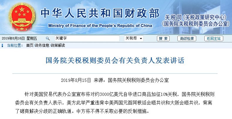 The US announced the new tariff threat shortly after the 12th round of high-level trade talks in late July. If the plan takes effect, the US will put additional tariffs on basically all Chinese goods coming into the US.