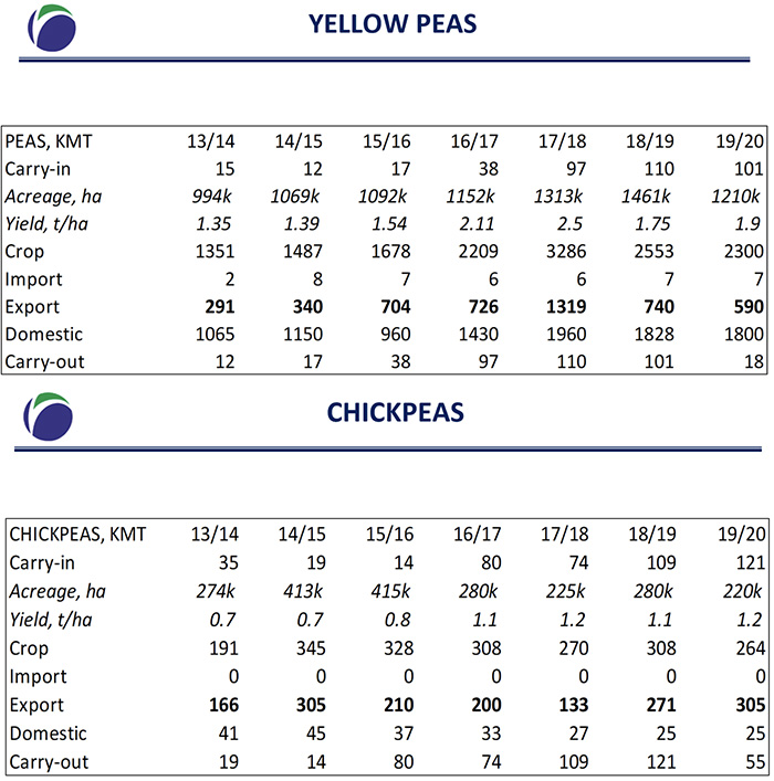 - Faba beans: 350 – 425,000 MT (+54% from last year)
