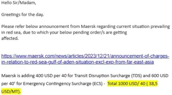 現在已有不少正在出貨歐洲的外貿人(rén)收到船(chuán)公司郵件(jiàn),表示需要加收繞行費: